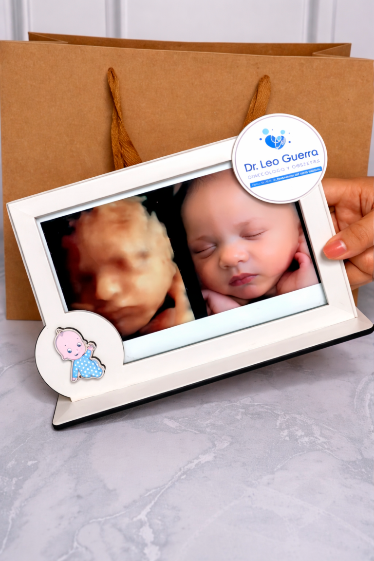 Al realizar tu ecografía emocional con nosotros, te obsequiamos un hermoso portarretrato, para que puedas conservar y exhibir la primera imagen del gran amor de tu vida: tu bebé.